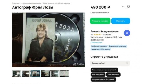 В Воронежской области решили продать автограф известного певца и композитора Юрия Лозы. Его стоимость возросла более чем на 15%. Обновленная цена на популярной платформе объявлений «Авито» была установлена 8 октября, спустя месяц после...