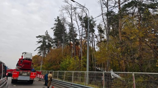 На участке идут работы по уборке аварийных и сухих деревьев, которые