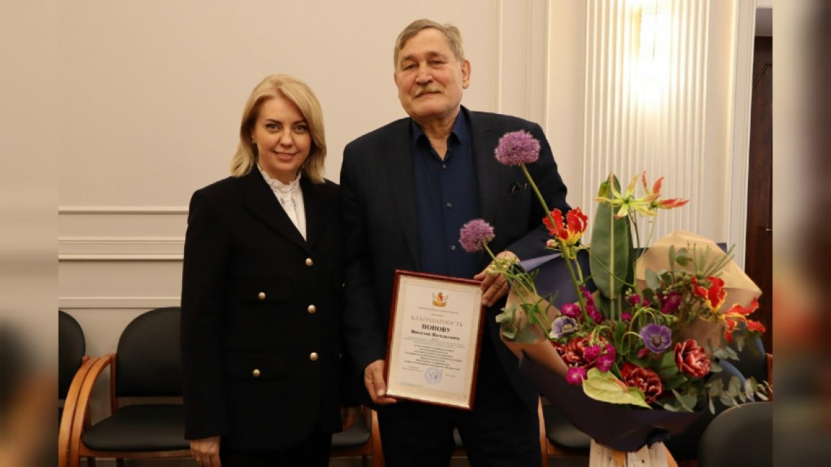 Министр культуры Мария Мазур поблагодарила Николая Попова за многолетний труд и вручила ему благодарность от губернатора Александра Гусева. В награде отмечены неоценимый вклад в развитие культуры региона и преданность делу.
