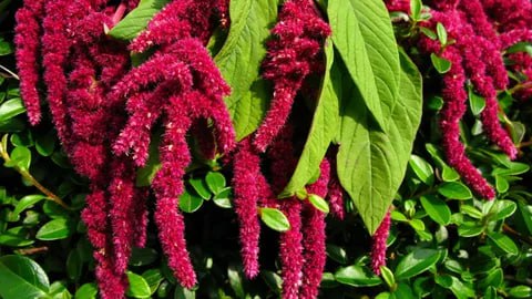 Амарант (на фото) - род травянистых растений с мелкими цветками, некоторые виды которых выращивают для употребления в пищу. У растения - съедобные листья, также из него делают муку, крупу и масло.