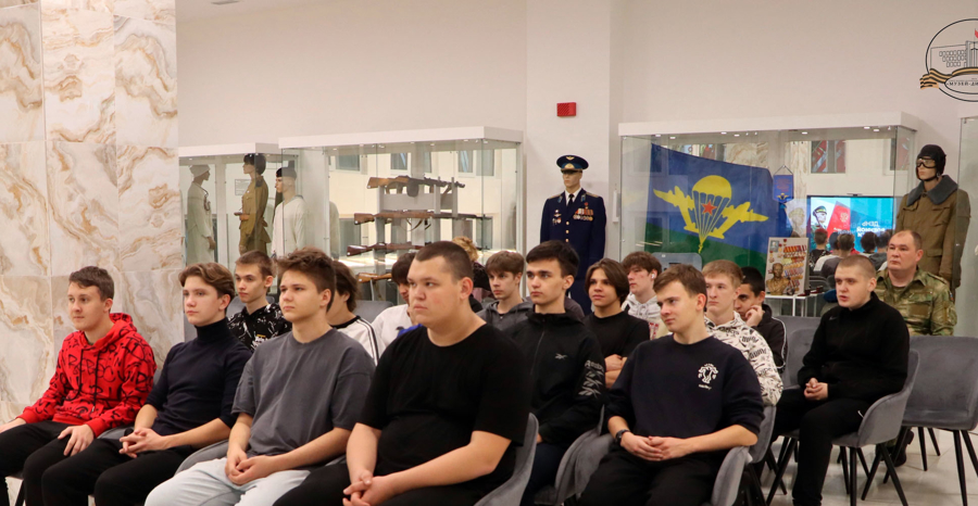 В Музее-диорама для студентов Воронежского авиационного техникума имени В.П. Чкалова выступил гость - представитель Росгвардии, который рассказал о процессе принятия военной присяги, о ведомственных вузах войск национальной гвардии, о правилах поступления в военные институты, порядке обучения и дальнейших перспективах прохождения службы в ведомстве, а также о социальных льготах и гарантиях для силовиков.