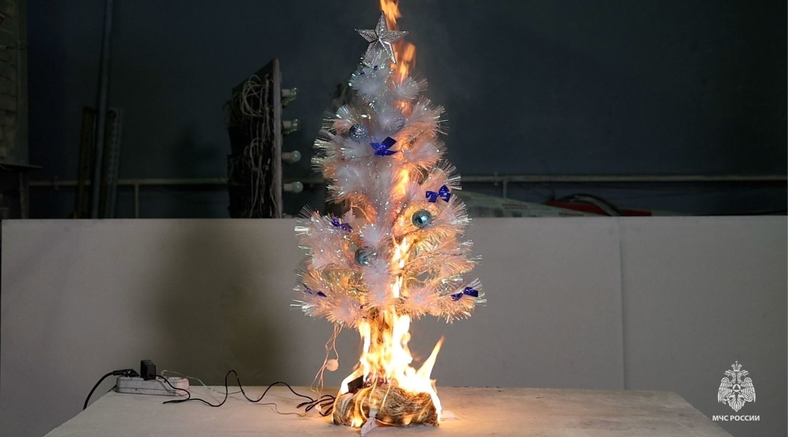 Эксперимент провели на базе Всероссийского научно-исследовательского института противопожарной обороны МЧС России. Три искусственные ёлки из поливинилхлорида и натуральную ель украсили мишурой и новогодними игрушками, затем создали условия для возникновения пожара по причине неисправности электрооборудования из-за перегрева гирлянды и удлинителя. Эксперимент показал, что ёлки горят очень быстро - всего минуту. При этом от пластиковых деревьев помещение моментально заполняется едким дымом, всего 5 вдохов смертельны. Также специалисты ведомства проверили разные типы гирлянд из различного ценового сегмента. Они испытывались в обычных условиях и при повышенном напряжении.