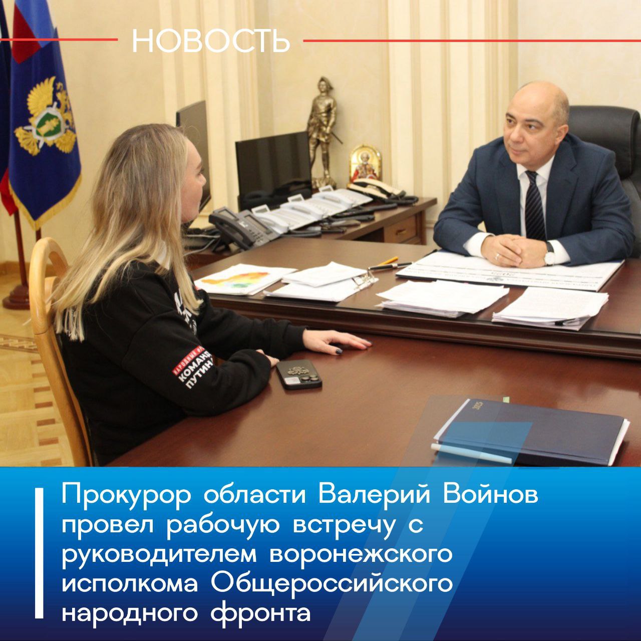 Сегодня, 23 декабря 2025 года, прокурор области Валерий Войнов провел рабочую встречу с руководителем регионального исполнительного комитета Общероссийского народного фронта Мариной Булгаковой.