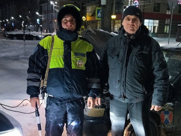 Сотрудники оперативно подключили пусковые провода от патрульного автомобиля и запустили двигатель машины.