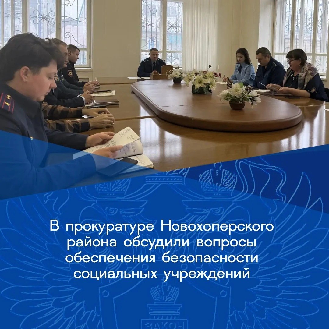 Прокурор Новохоперского района Роман Шопин провел заседание межведомственной рабочей группы по вопросам координации и взаимодействия в сфере противодействия проявлениям экстремизма и терроризма, на котором рассмотрен вопрос о состоянии законности в сфере антитеррористической защищенности социальных учреждений.