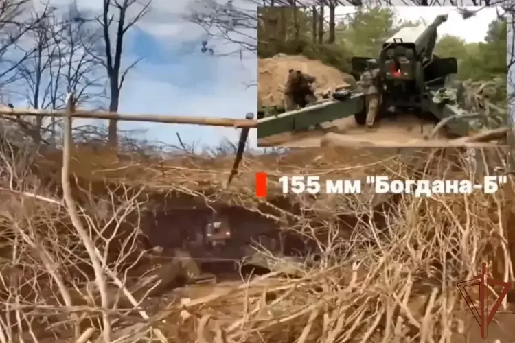 В ходе ведения воздушной разведки военнослужащие спецподразделения Росгвардии обнаружили буксируемую гаубицу ВСУ – 155-мм «Богдану-Б».