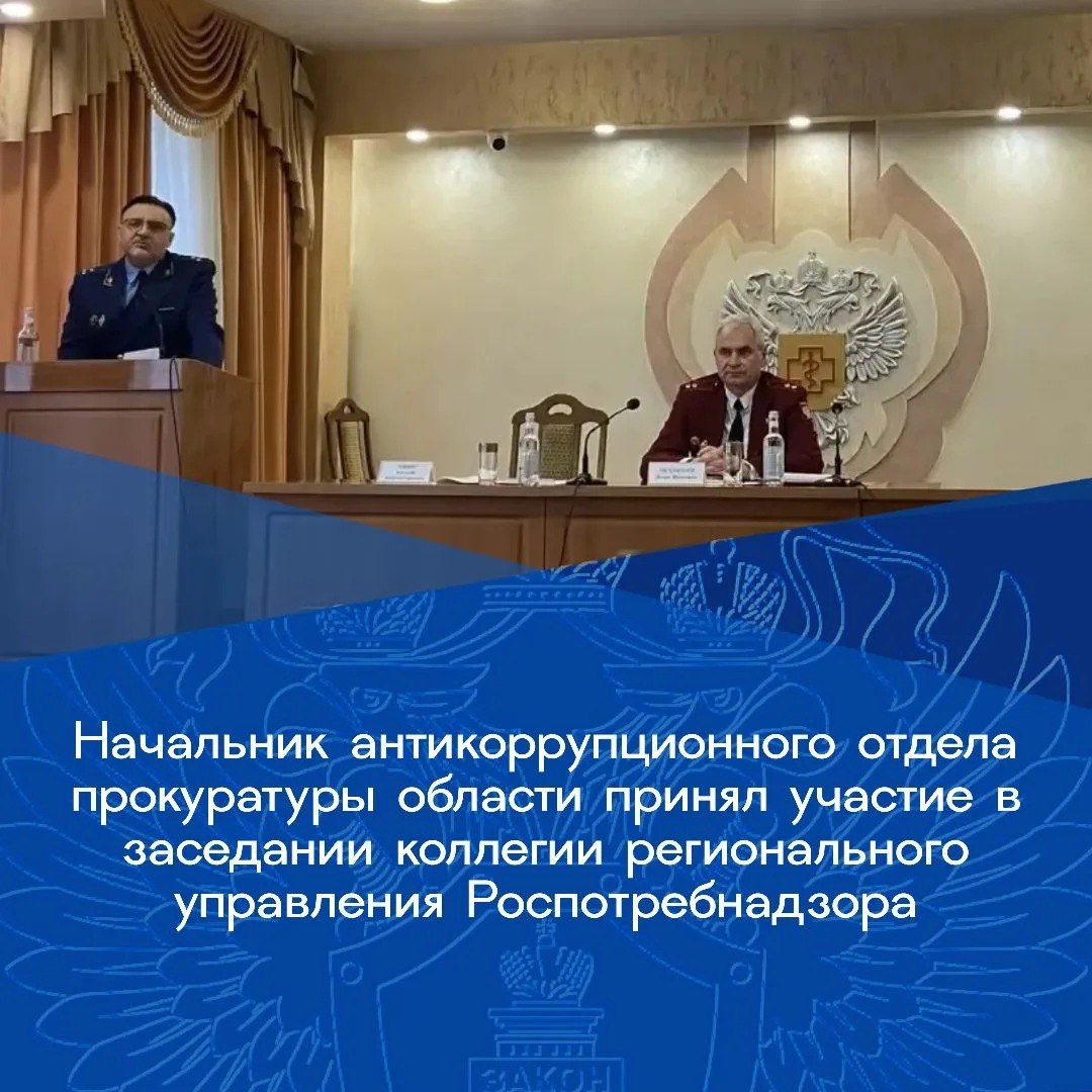 Начальник отдела по надзору за исполнением законодательства о противодействии коррупции прокуратуры области Алексей Кныш принял участие в заседании коллегии регионального управления Роспотребнадзора по Воронежской области.