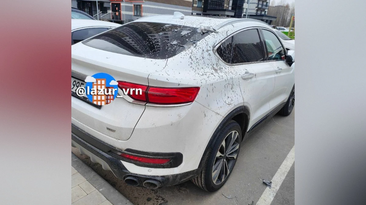 В Воронеже в жилом комплексе «Лазурный» над машиной Geely взорвался фонарь. Кадры пострадавшего автомобиля опубликовали горожане в социальных сетях в воскресенье, 12 апреля.