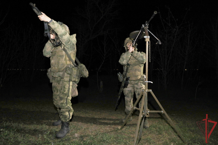 С помощью средств обнаружения росгвардейцы своевременно выявляют приближение целей и точным огнём из стрелкового оружия уничтожают вражеские беспилотники.