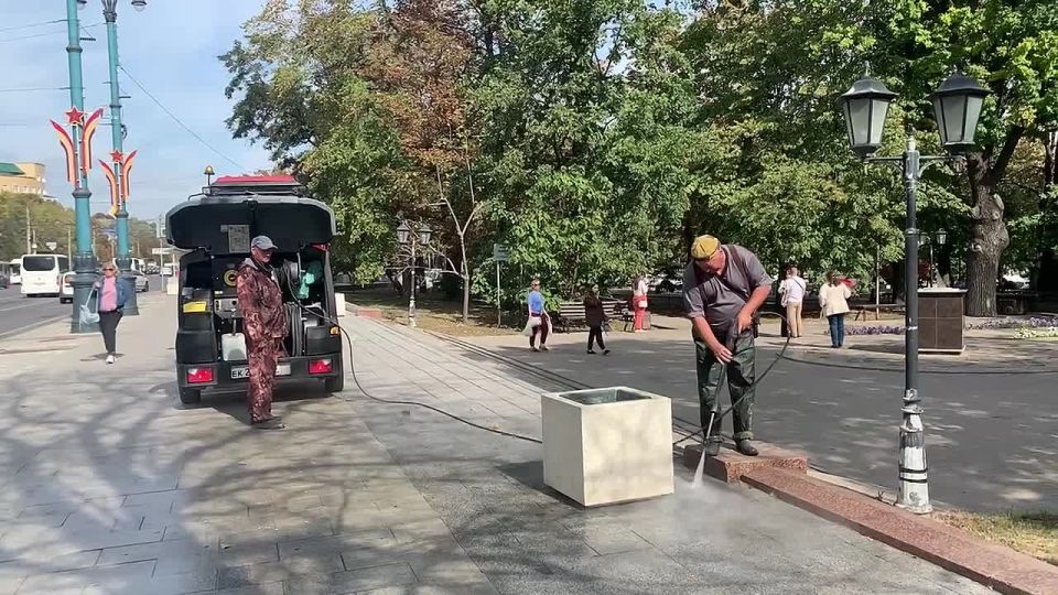 Генеральная уборка проспекта Революции идет в штатном режимеКомбинат благоустройства в круглосуточном режиме проводит работы по влажной уборке. Вручную и с помощью спецтехники очищают плиточное покрытие, лавки, многочисленные урны, столбы освещения...