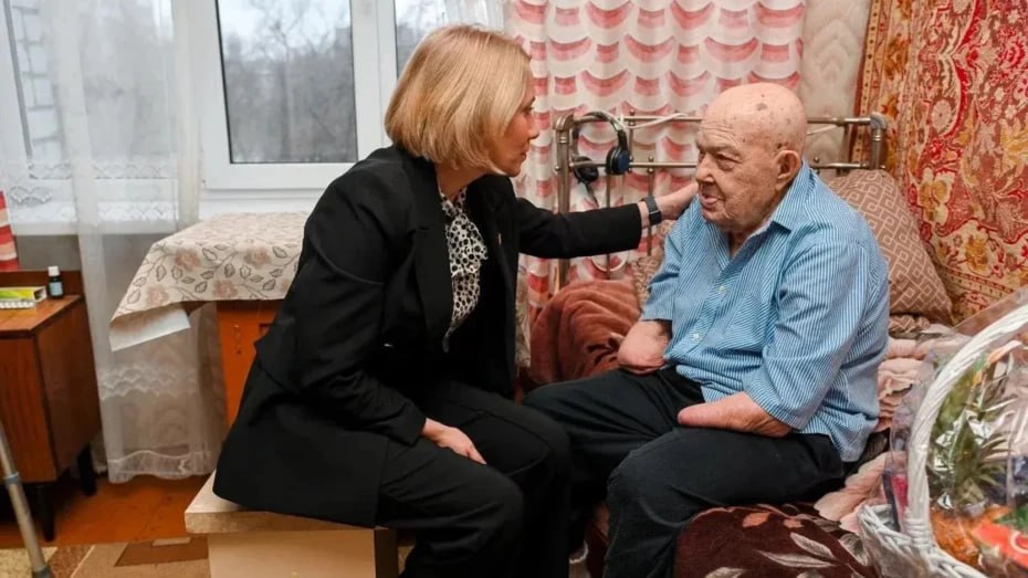 Елена Дерганова навестила Дмитрия Филонова. В этом году ему исполнился 101 год. Министр пожелала ему отличного настроения, добрых новостей и крепкого здоровья. Мария Мазур поздравила с праздниками Фариде Осипову, мужественно пережившую все 872 дня немецко-фашисткой блокады Ленинграда. Министр пожелала ей крепкого здоровья, долголетия, душевного спокойствия и благополучия, а также вручила открытку с поздравлениями от губернатора Александра Гусева.