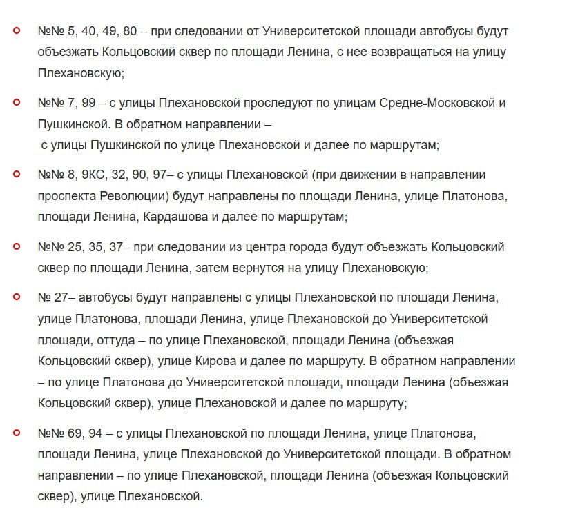 В центре Воронежа на 4 часа запретят движение и скорректирую маршрут 17 автобусов.