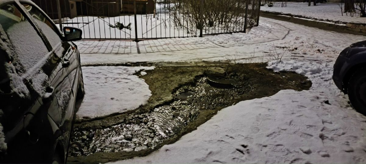 По словам жильцов, из-за коммунальной аварии размыло половину двора и две междомовые дороги. Учитывая мороз, горожане боятся гололеда.