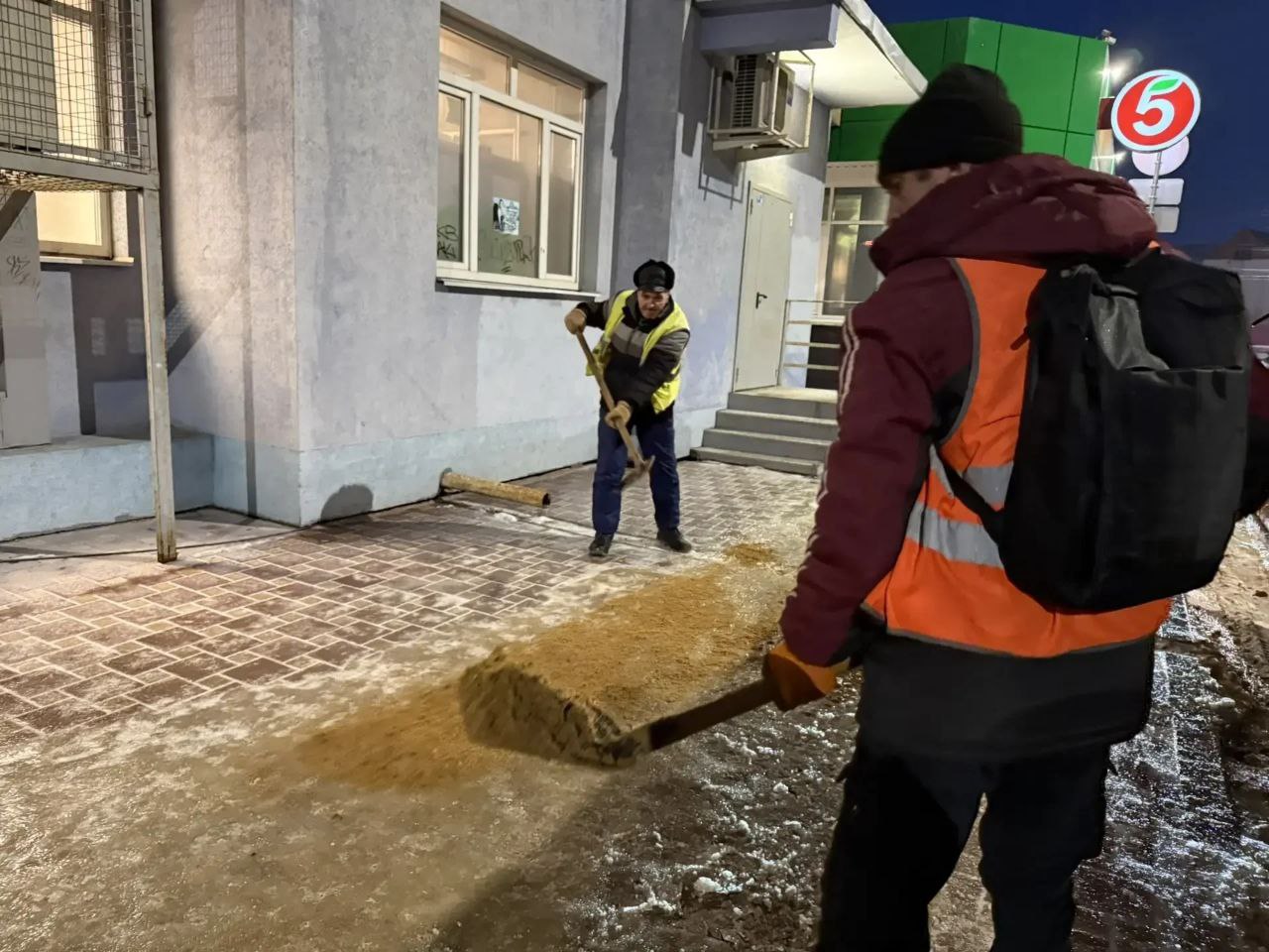 Обработку тротуаров и дорог комбинаты благоустройства продолжают в круглосуточном режиме.