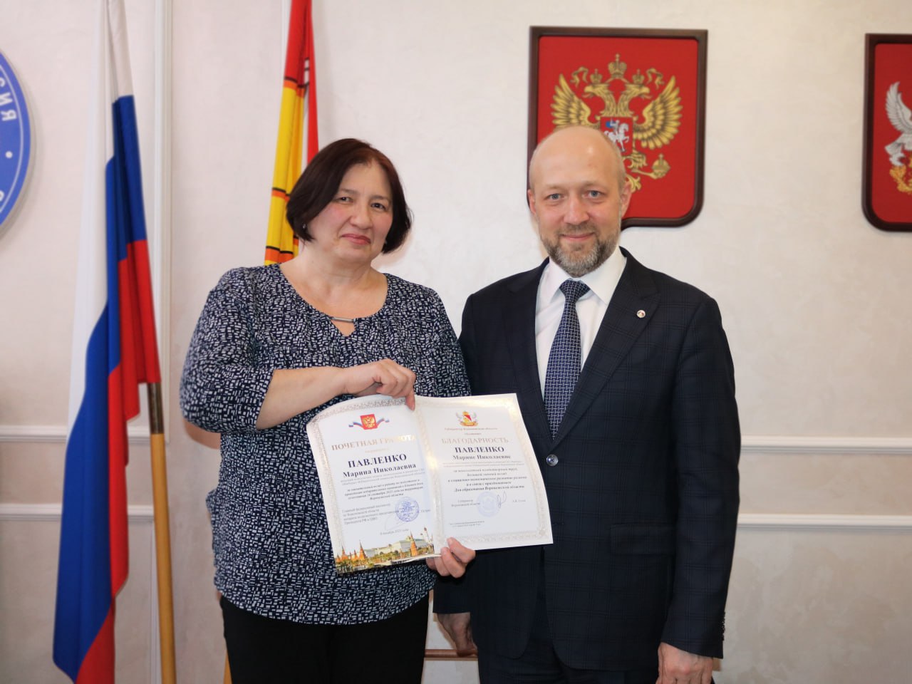 Системный администратор ТИК Советского района города Воронежа Марина Павленко награждена Почетной грамотой Главного федерального инспектора по региону и благодарностью Губернатора Воронежской области.