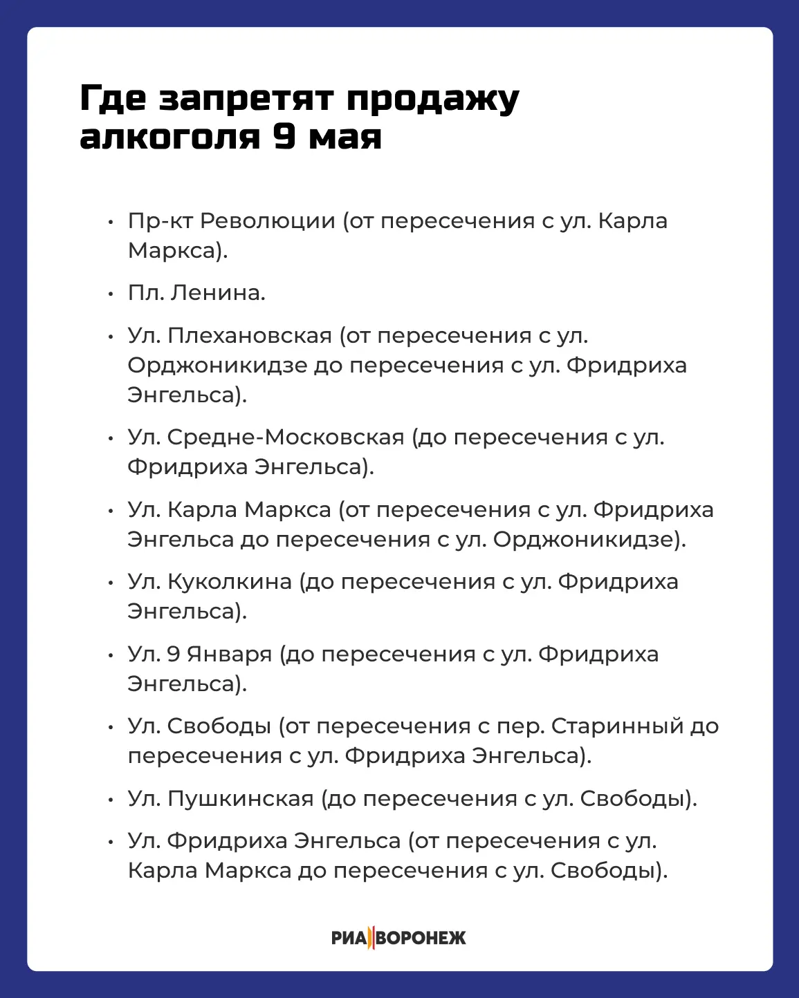 С 8:00 до 23:00 будет действовать запрет на розничную продажу алкогольной продукции, в том числе пива и напитков на его основе. Ограничение коснется территорий, прилегающих к местам проведения мероприятий ко Дню Победы, то есть в центре города.