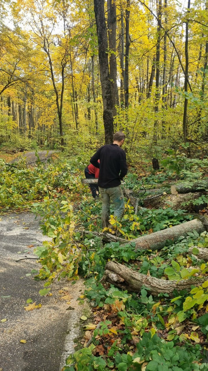 Дерево рухнуло на дорогу спустя несколько минут после того, как Александр Акулов, который убирал лыжероллерную трассу в парке, прошел участок.