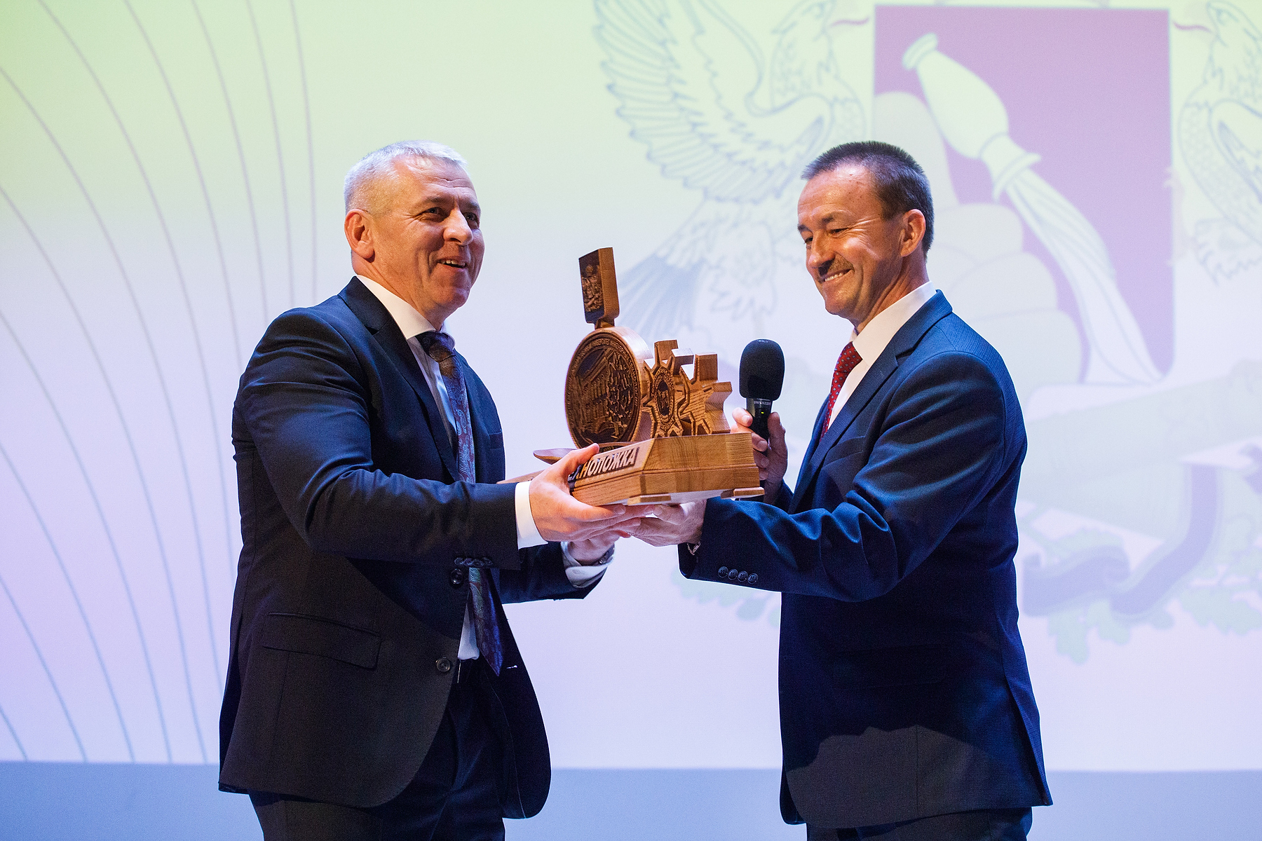 Юрий Матузов вручил награды регионального парламента сотрудникам и ветеранам вуза, а ректору ВГУИТ Николаю Репникову передал оригинальный деревянный сувенир ручной работы с изображением исторического здания университета.