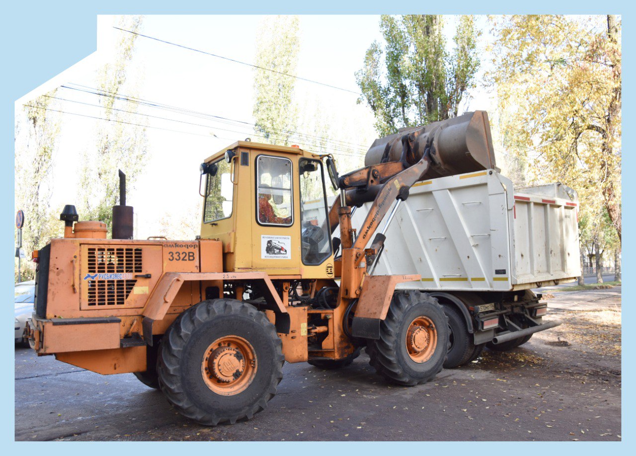 Сотрудники комбината благоустройства сначала формируют кучи листвы вручную, затем загружают их в ковш фронтального погрузчика, который потом перемещает всё собранное в кузов самосвала. В течение суток удаётся собрать и вывезти от 30 до 40 тонн пескосмёта и листвы.