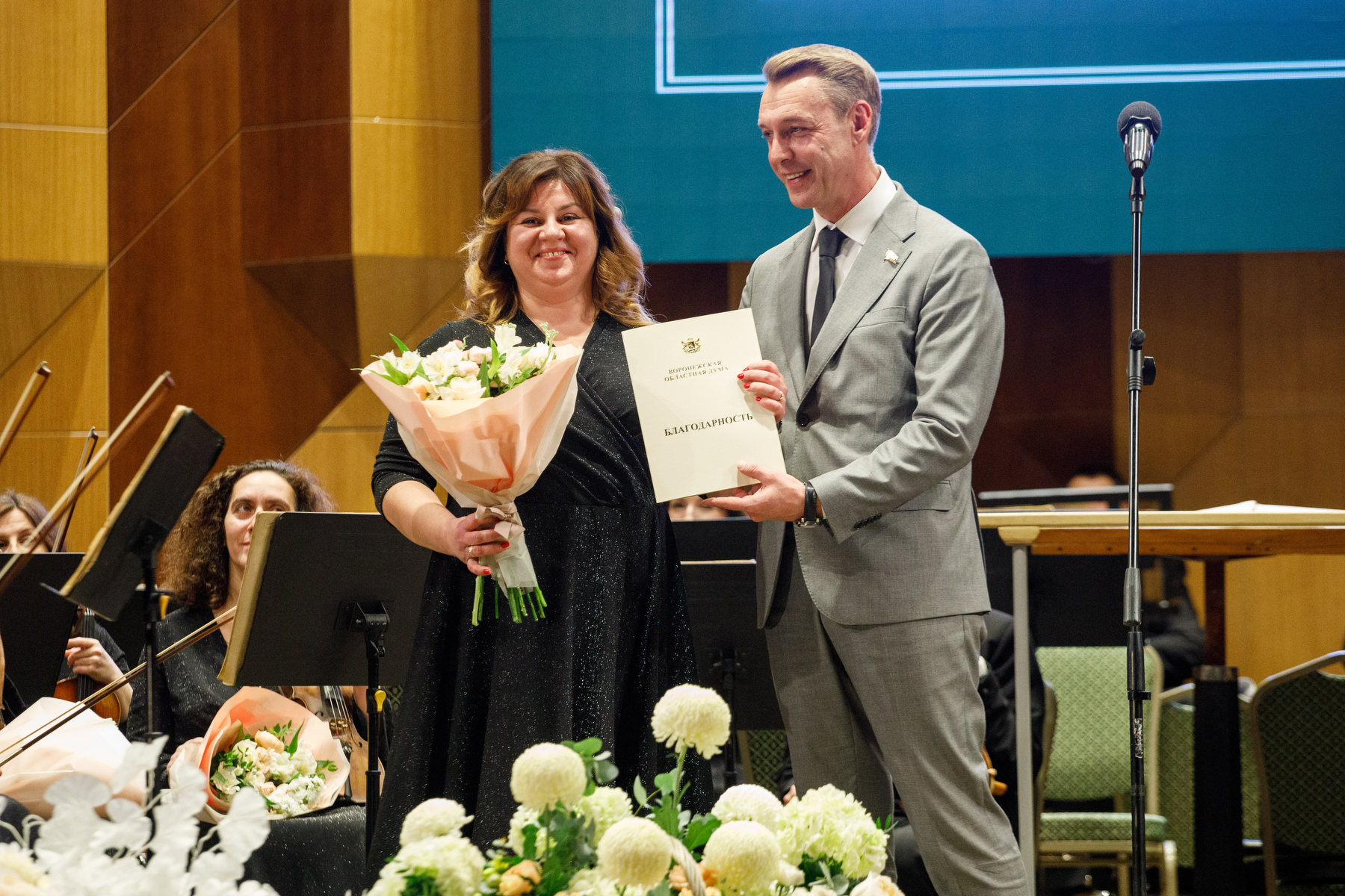 По поручению председателя Воронежской областной Думы Юрия Матузова заместитель председателя Комитета по культуре, физической культуре и спорту Юрий Смышников принял участие в торжественном мероприятии и поздравил коллектив. От всего депутатского корпуса он поблагодарил музыкантов за то, что сохраняют традиции, заложенные 100 лет назад, и за ту магию, которую они дарят слушателям.