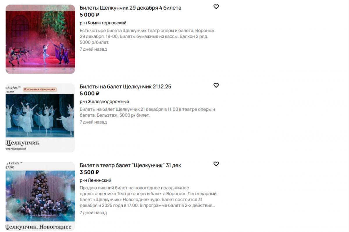 По информации с «Авито», цена билетов на новогоднее представление у перекупов варьируется от 3 до 5 тысяч рублей. Однако среди объявлений можно найти и подозрительные, за которыми могут скрываться мошенники. Например, кто-то предлагает билеты всего за 1 тысячу рублей.
