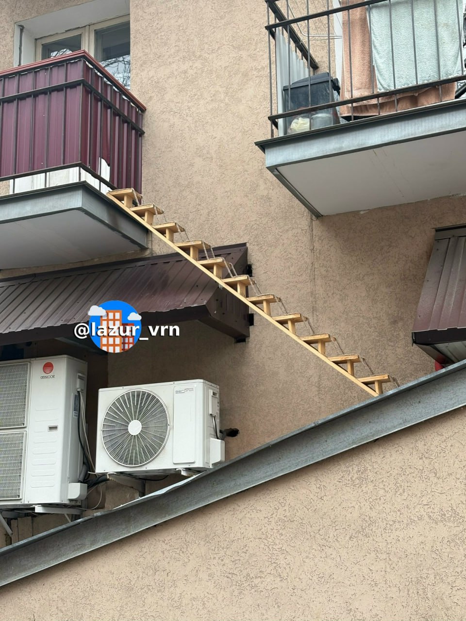 Лестницу для котика соорудили на балконе дома в Воронеже
