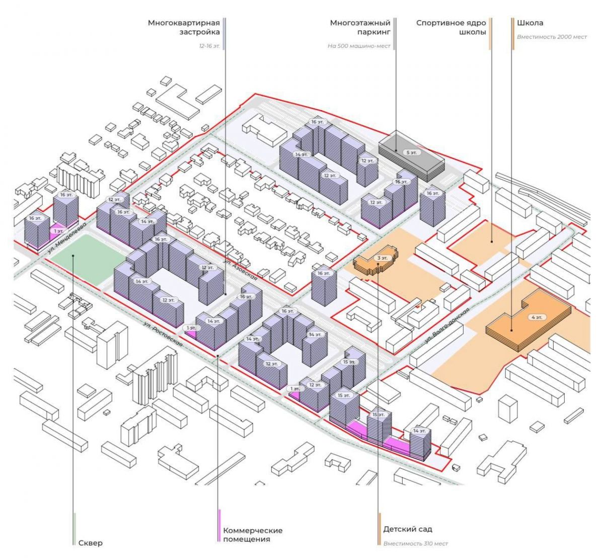 Проект комплексного развития территорий (КРТ) разработало бюро «ПАСП» по заказу администрации Воронежа. Общая площадь обновляемых кварталов составит 25 га. Общественная и дворовая территории будут разделены, а дворы планируются без автомобилей – в рамках проекта будет построен многоуровневый паркинг и обустроены открытые парковочные места. Кроме того, в рамках КРТ предусмотрена реконструкция школы и строительство нового детского сада, а также создание спортивного комплекса и озеленение улиц Менделеева, Ростовской и других.