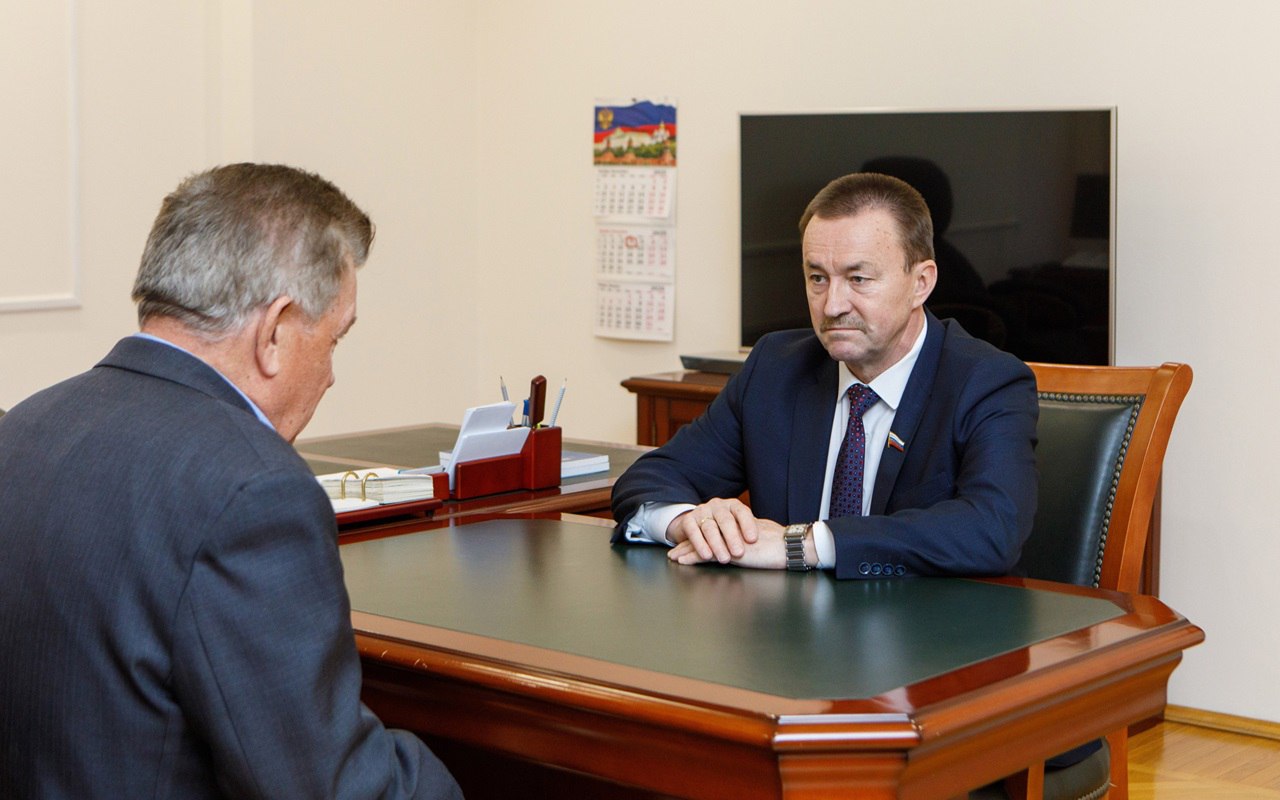 Председатель Воронежской областной Думы Юрий Матузов встретился с Почетным гражданином Воронежа, контр-адмиралом в отставке Николаем Ермаковым.