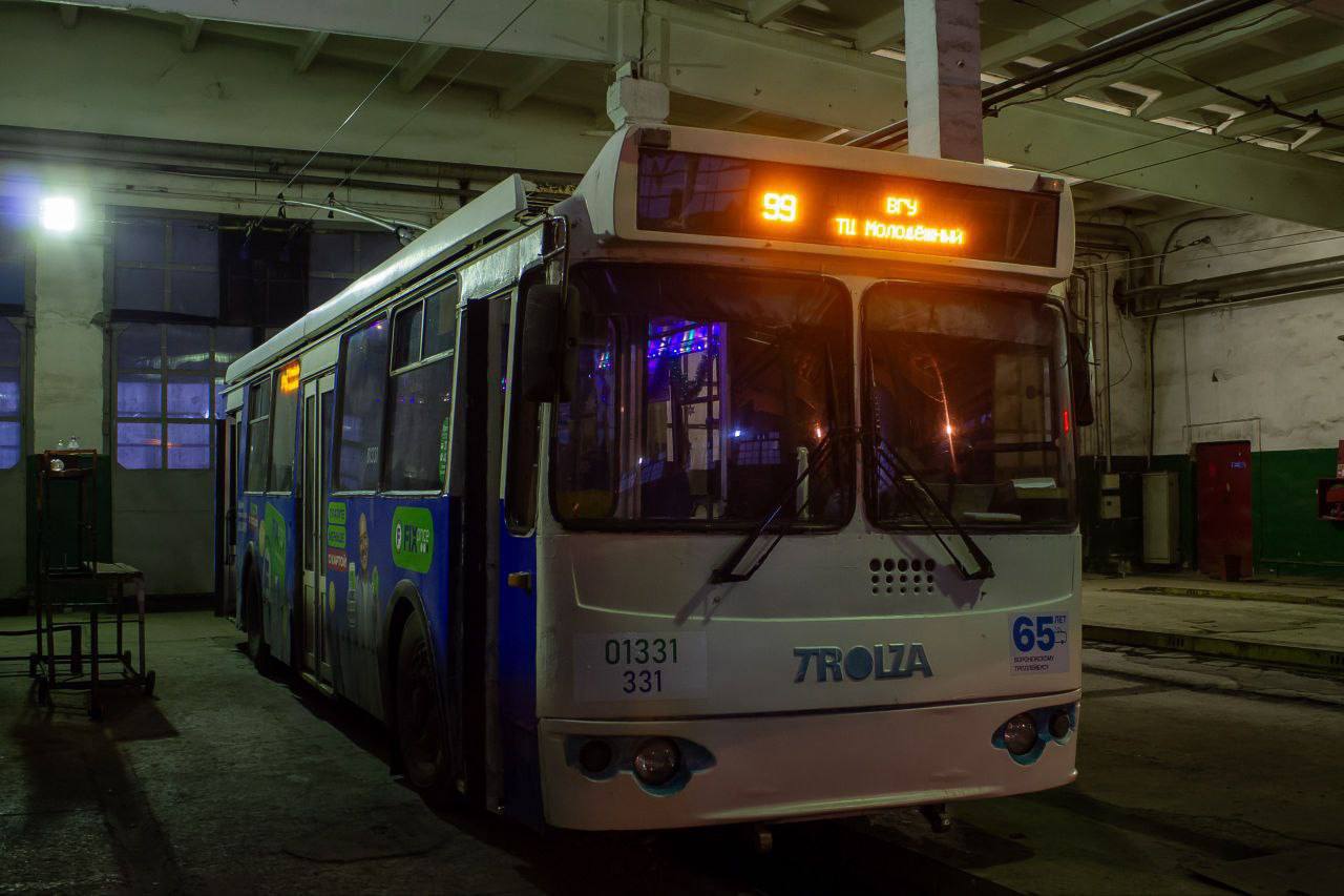 маршрут №99 вышел новогодний троллейбус. Несмотря на отсутствие снега, жители