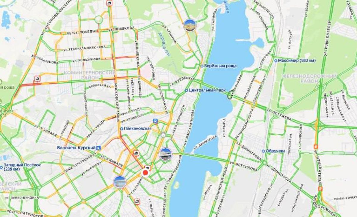 Также карты фиксируют сразу пять аварий - 2 в Коминтерновском, 2 в Центральном и 1 в Ленинском районах. В Левобережном, Железнодорожном, а также в Советском районах, по данным «Яндекс.Карты» ДТП не произошло.