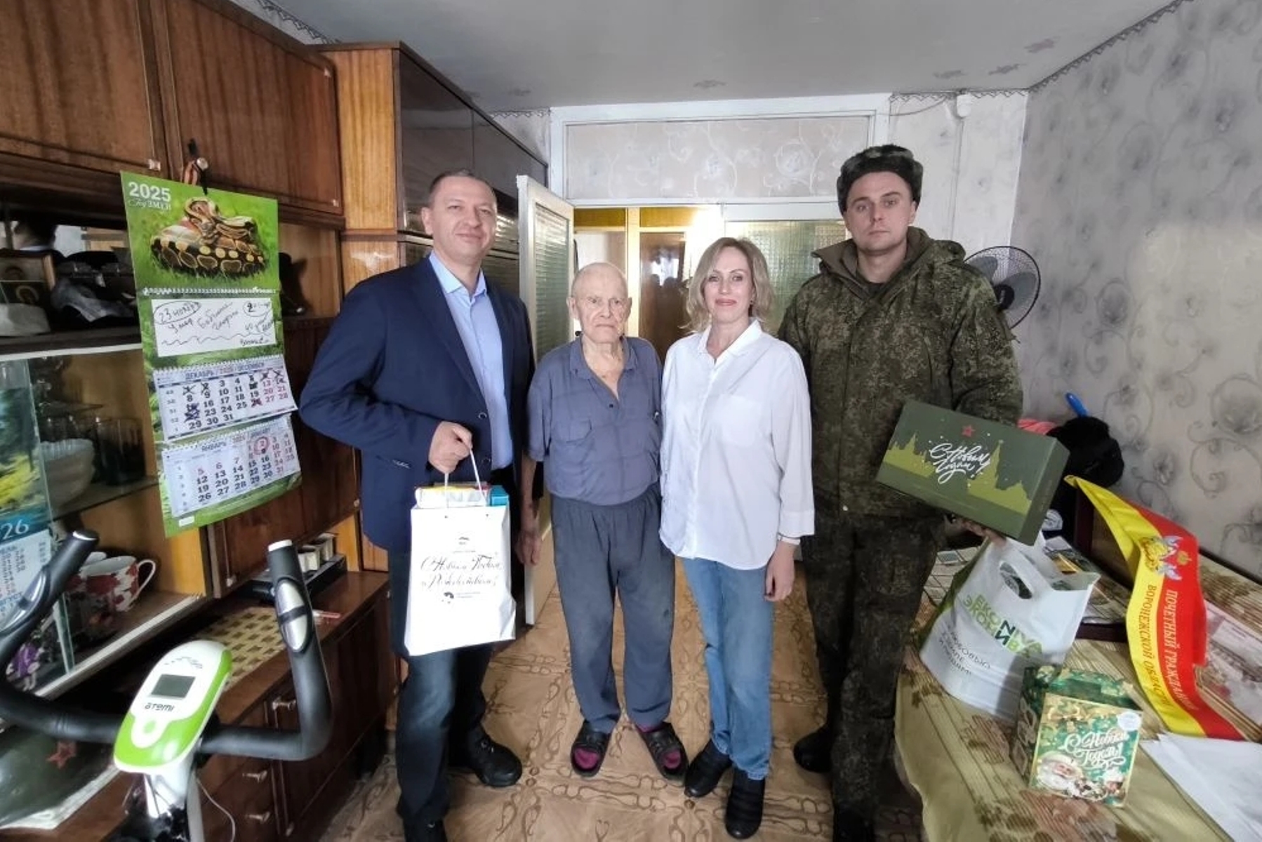 Депутат Воронежской областной Думы Роман Володин поздравил с наступающим Новым годом участника войны Владимира Антоновича Мазиева.