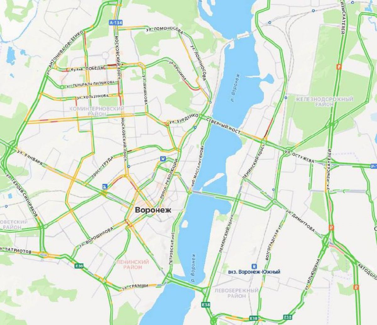 Причиной, вероятно, стали аварии — на карте отмечены две: на Кольцовской улице и на Ленинском проспекте. Так начался первый рабочий день. Воронежцы жалуются на большие опоздания и выражают недоумение в соцсетях — многие ехали на работу по несколько часов.