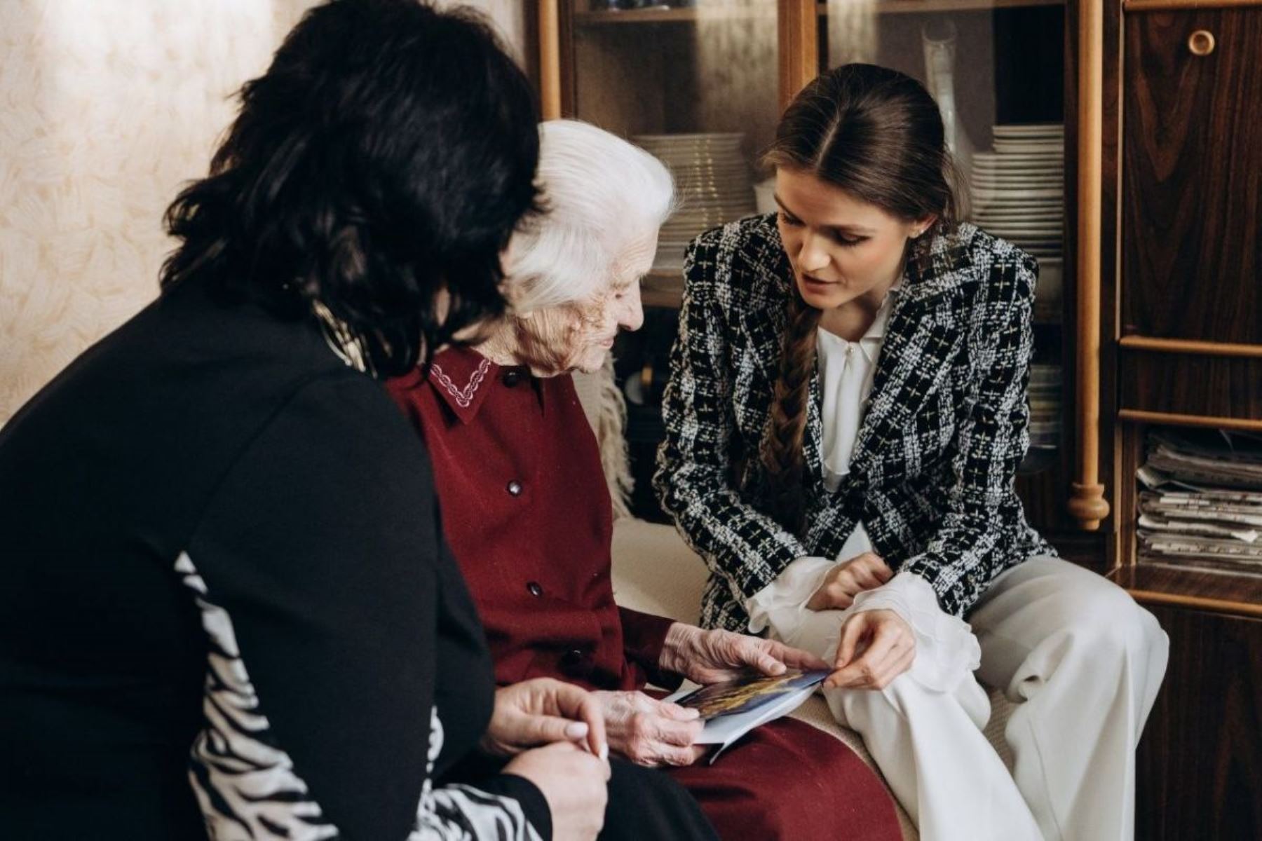 Также Валентина Падина поздравила с новым годом и вручила подарки Фаине Ивановне Феoфaновой. Её война — это звук метронома в блокадном Ленинграде и страшная переправа по «Дороге жизни», когда машина ушла под лед, но семья чудом спаслась. Фаина Ивановна рассказала, что её отец-летчик, выпускник Борисоглебской летной школы, погиб в первый год войны. Но перед уходом на фронт он успел припасти мешок картошки — именно эта отцовская забота спасла семью от голодной смерти в первую, самую страшную зиму.