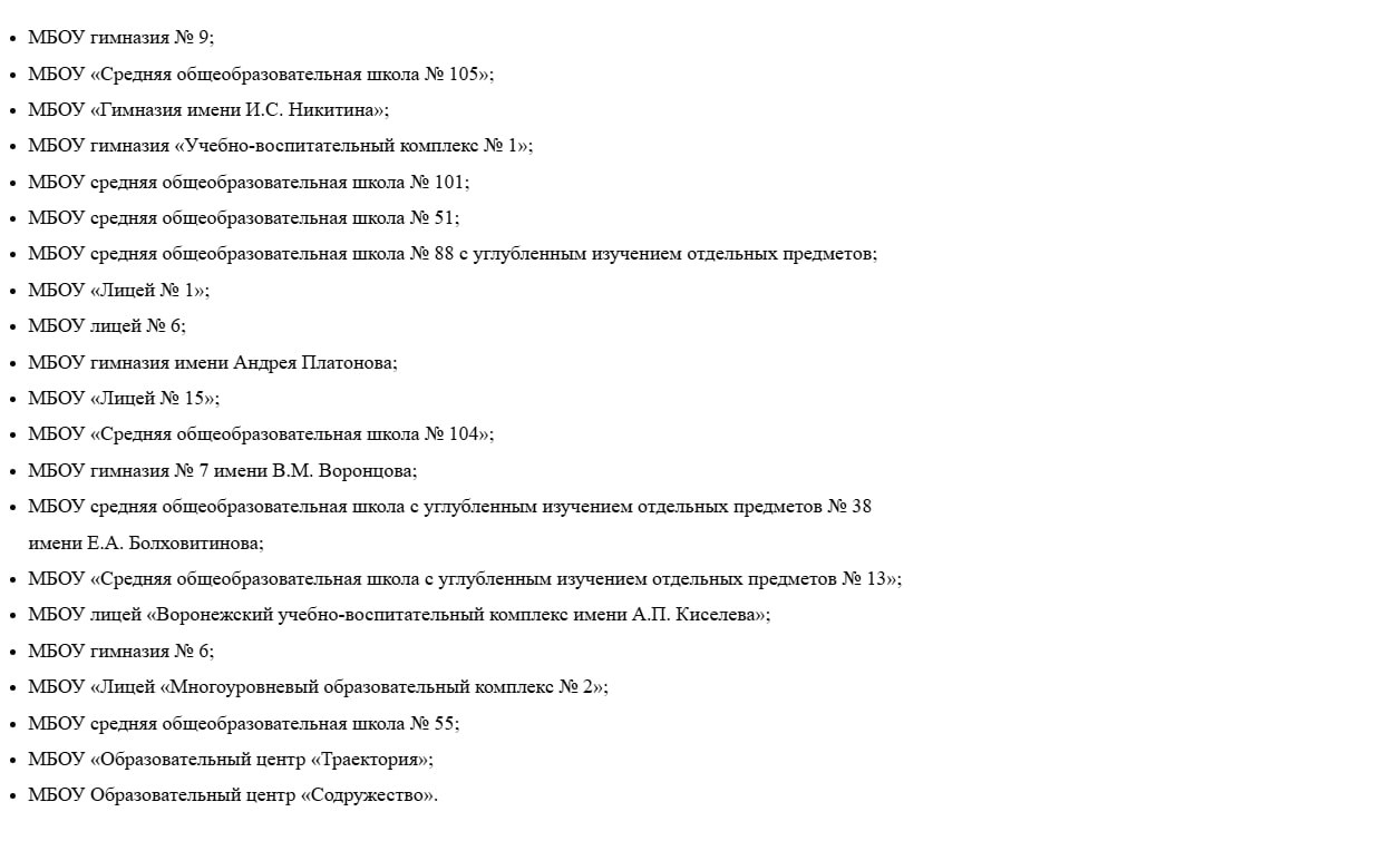 В столице Черноземья лучшими признаны следующие образовательные учреждения: