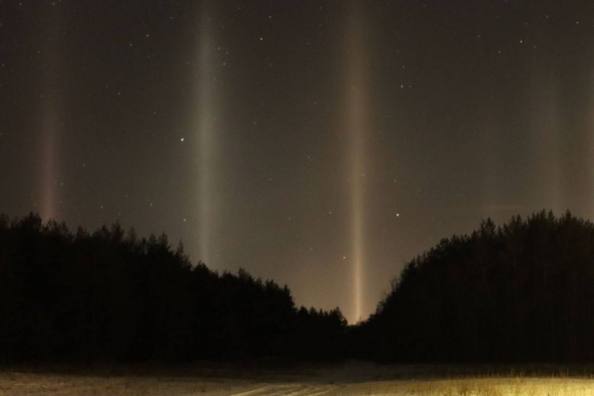 Фотографиями и видео «замороженного света» местные жители активно делятся в социальных сетях. На снимках видно, как вертикальные лучи, похожие на колонны, поднимаются от земных источников света – фонарей, окон домов – и уходят в темное зимнее небо, создавая фантастическую картину.