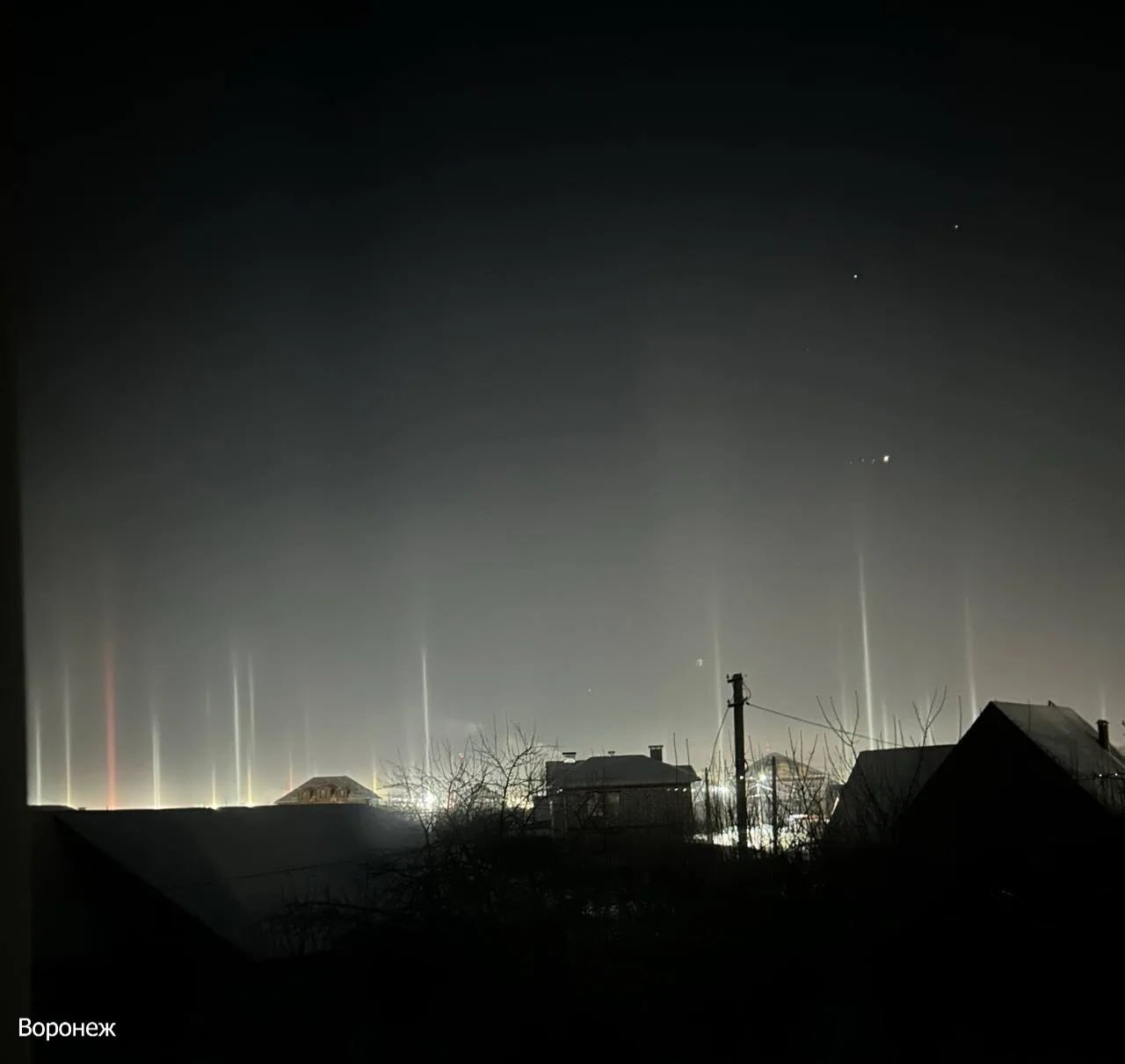 Необычное природное явление появилось над Воронежем, Республикой Коми, Курском, Нижним Новгородом и Самарой. Такие ледяные столбы образуются из-за отражения света от кристаллов льда, взвешенных в воздухе.