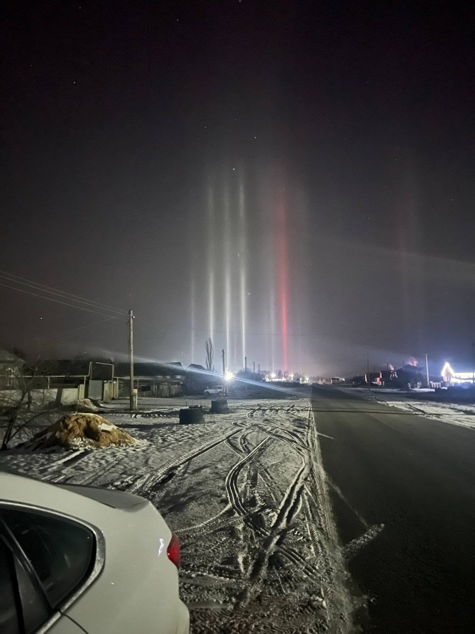 Жители Богучара прошедшей ночью стали свидетелями необычного оптического явления — в небе появились световые столбы.