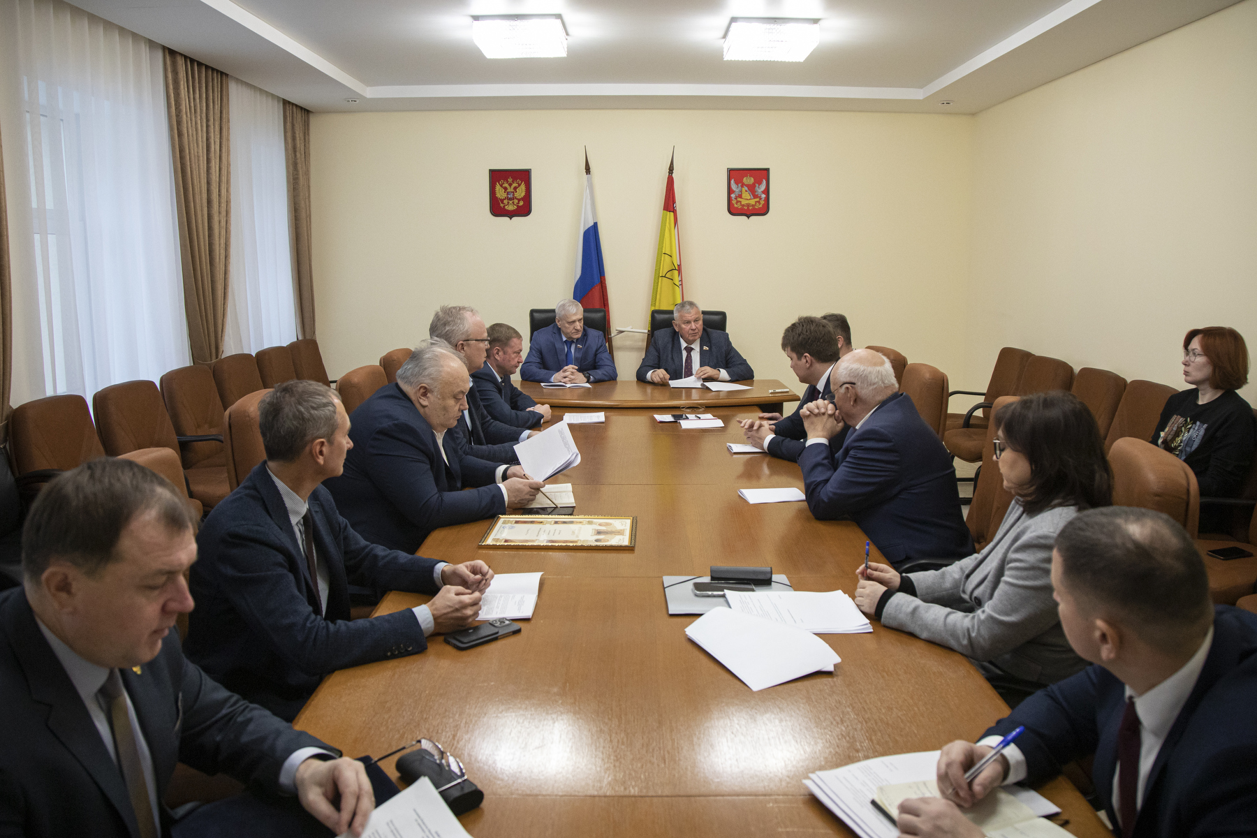 Перед началом заседания Александр Солодов передал Валерию Ярошеву Благословенную архиерейскую грамоту от Митрополита Воронежского и Лискинского Леонтия.