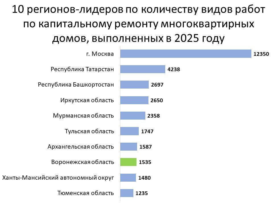 Воронежская область вошла в ТОП-10 российских регионов по количеству ремонтных работ, выполненных в многоквартирных домах в 2025 году