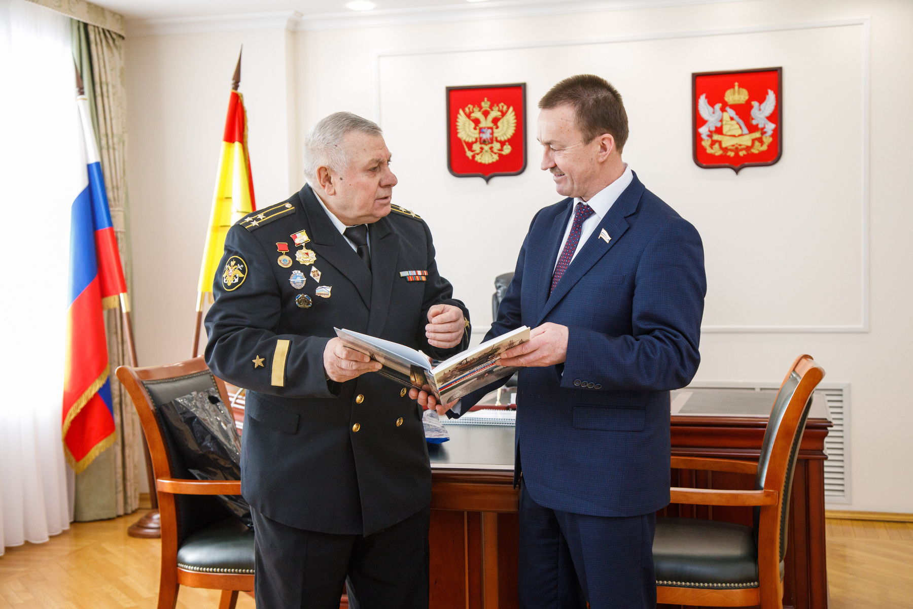 6 февраля в парламентском центре прошла рабочая встреча председателя Воронежской областной Думы с капитаном 1-го ранга в отставке Леонидом Поповым.