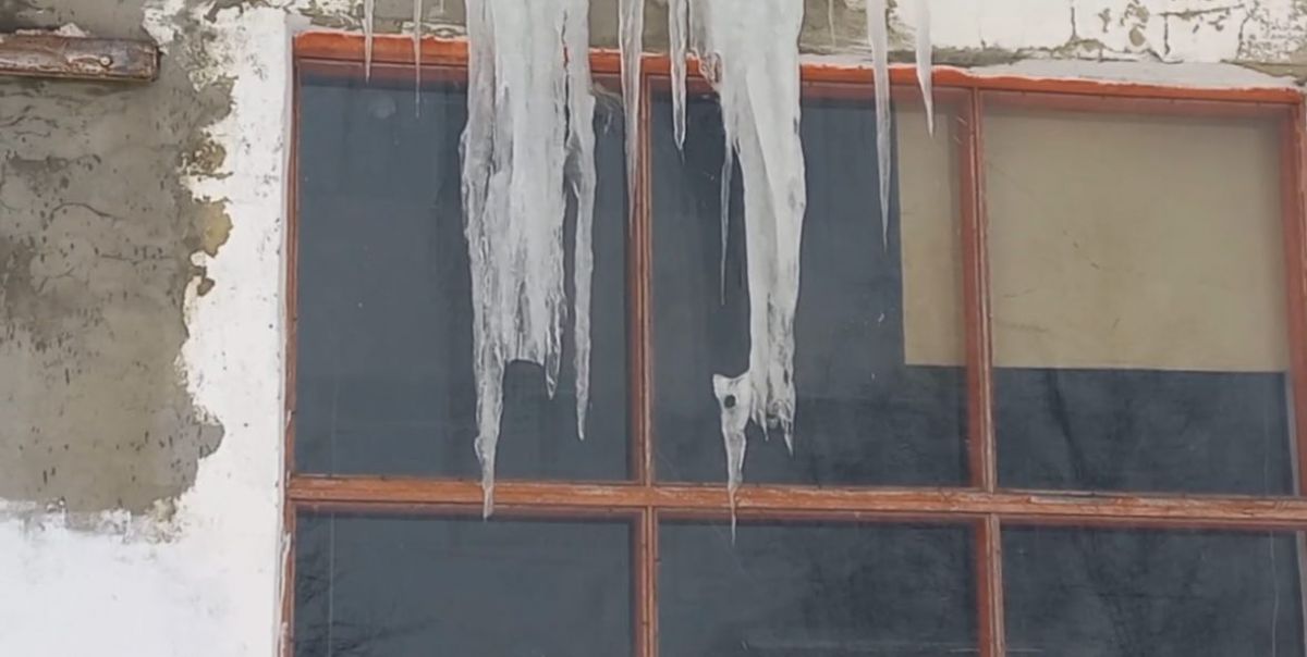 - Вот, например, в самом дальнем, самом северном районе Воронежа, Краснолесном, вот такие трехметровые гиганты висят на здании мебельного комбината. Хорошо хоть, что люди ходят не близко к этой стене. Здесь даже есть небольшой водопад! Вода из водостока льется вниз, причем лед и верху и внизу, то есть и сталактиты, и сталагмиты, - так горожане сообщают об огромных сосульках.