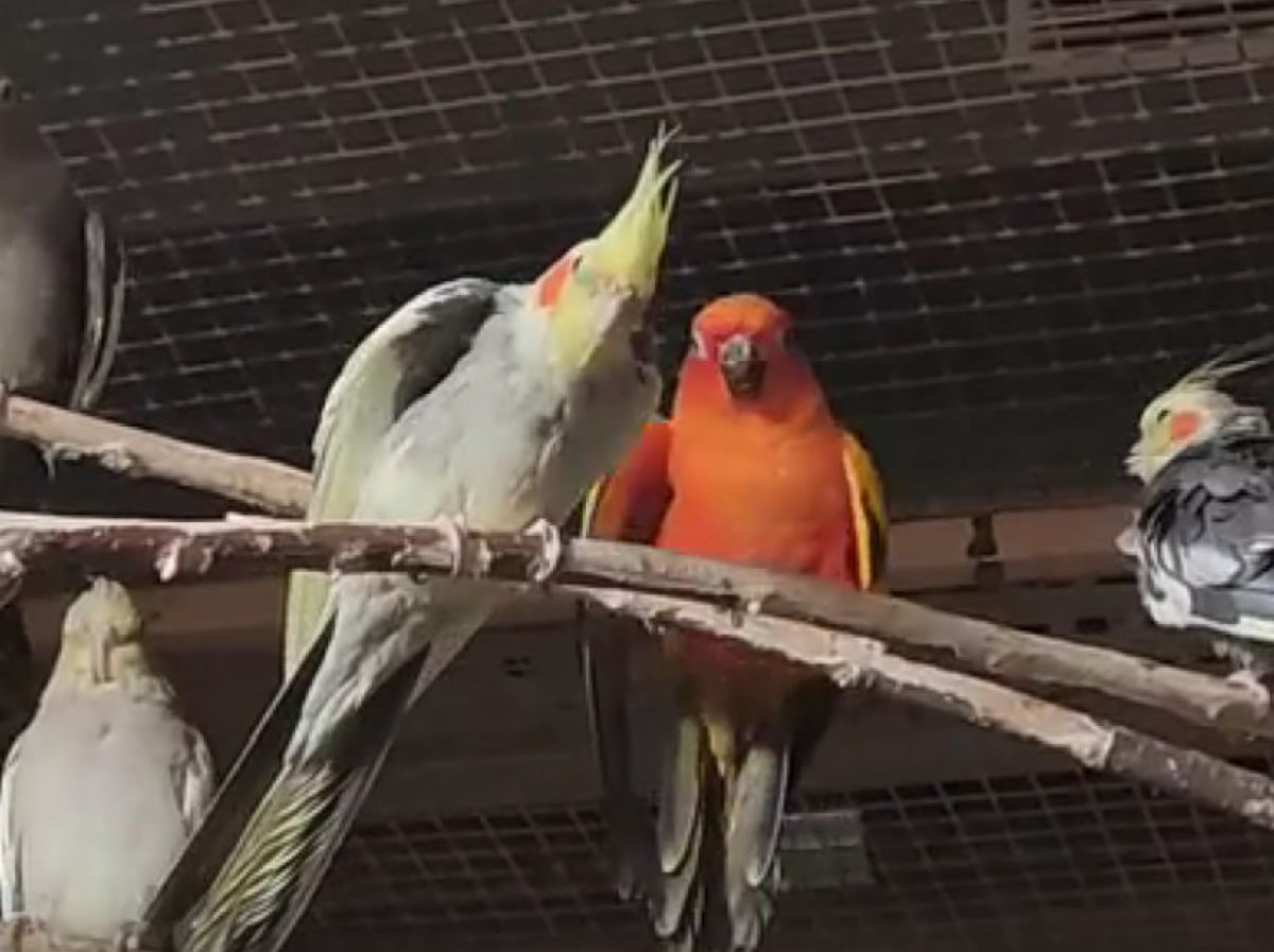 Но есть среди них и уникальная пара. Единственный в своем роде солнечный аратинга, вопреки всем законам природы, выбрал себе спутницу из числа волнистых попугаев. Это редчайший пример межвидовой симпатии, который зоологи наблюдают с особым интересом.