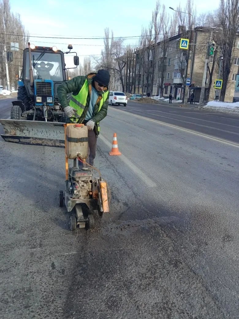 Его ведут сотрудники Комбината благоустройства Левобережного района.