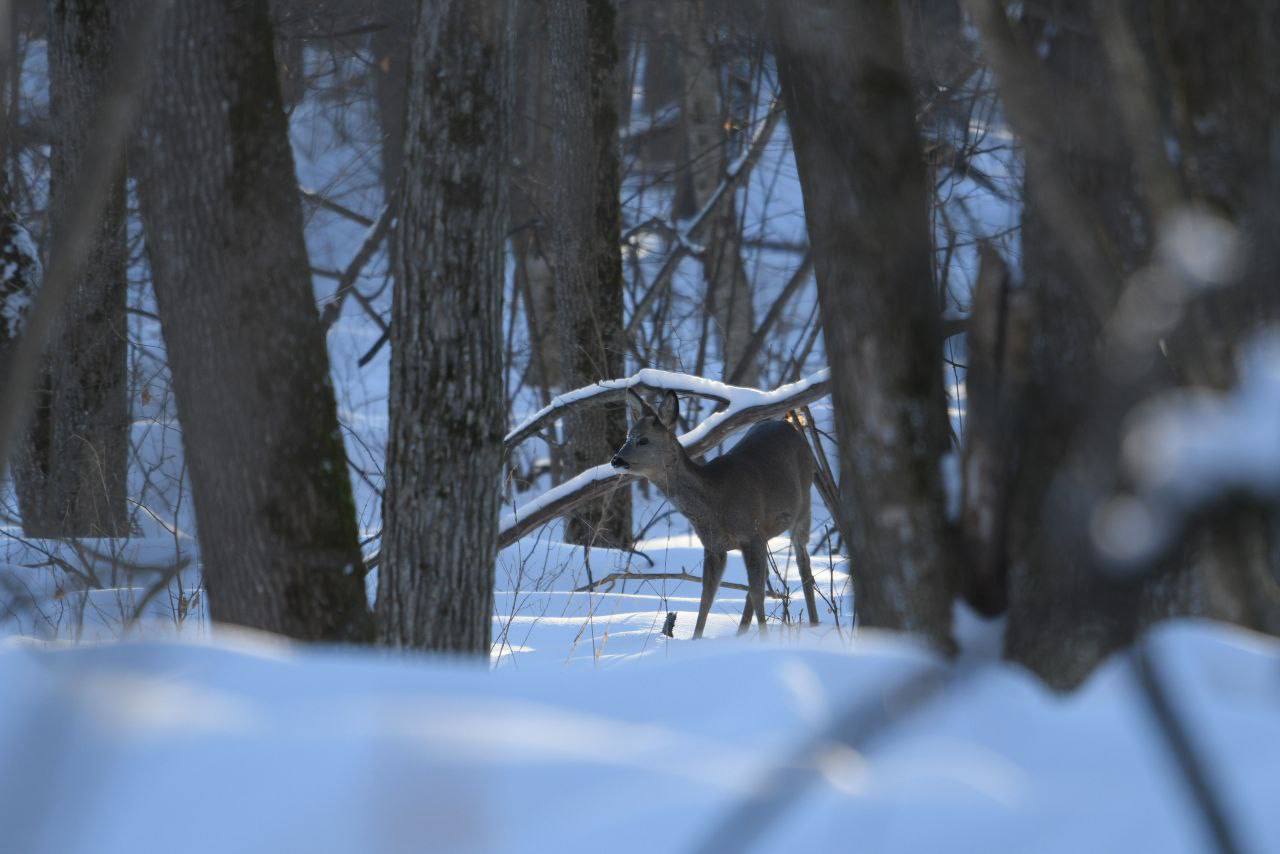 Животные сталкиваются с большими проблемами из-за глубокого слоя снега, на данный момент его толщина составляет 55 см. Кабанам и косулям трудно передвигаться вообще и в частности подходить к подкормочным площадкам, где они могут восстановить силы, немного подкрепиться и пополнить запас минералов на заповедных солонцах.