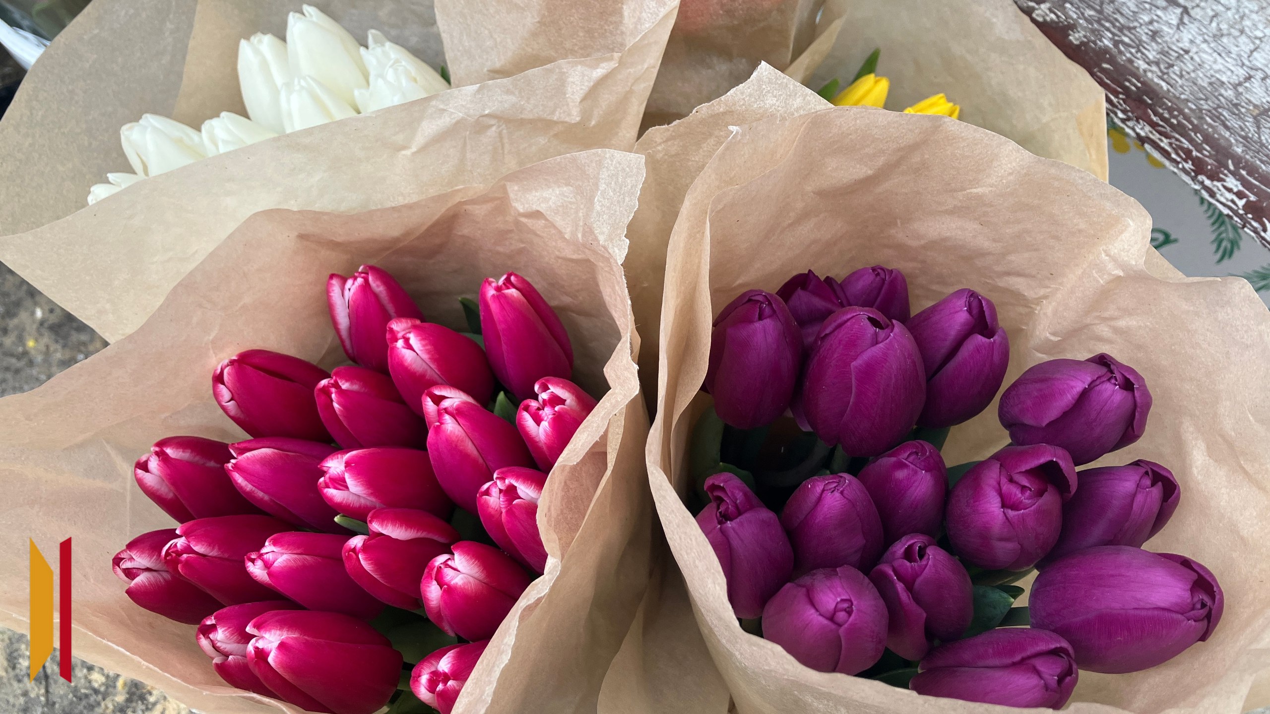 На улицах города появились продавцы с тюльпанами и мимозами. Тюльпан можно купить за 100-150 рублей, веточка мимозы стоит около 200 рублей. Некоторые продавцы добавляют к букету открытку или игрушку, а кто-то предлагает скидку при покупке большого количества цветов. В ассортименте и композиции из искусственных цветов.