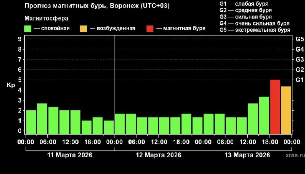 Ученые предупредили, резкий скачок активности произойдет в 18:00. Буря будет слабой — уровня G1. Затем возбуждение магнитосферы пойдет на спад.