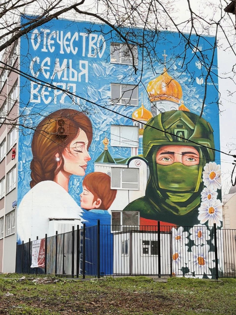 Работа «Глаза Победы» Ангелины Плетневой украсила фасад Приазовского государственного технического университета в Мариуполе. В прошлом году девушка стала победительницей всероссийского конкурса муралов «Новые горизонты: искусство единства». Проект реализовали художники команды «Граффити Раша» при поддержке ассоциации «Я горжусь» и Министерства науки и высшего образования России.