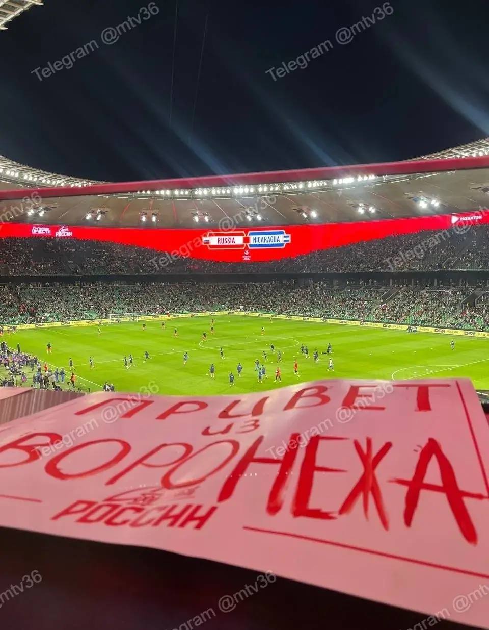 Воронежские болельщики развернули огромный баннер на матче сборных России и Никарагуа