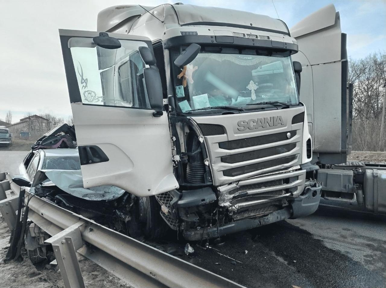ДТП произошло в среду, 1 апреля, на 329 км автодороги «Р-298» . Водитель грузовика Scania буксировал другой грузовик, выехал на встречку и врезался в автомобиль Kia Rio.