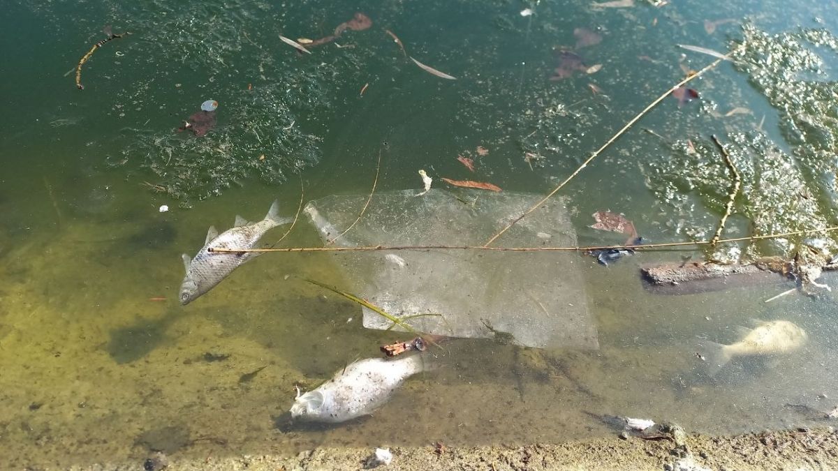 На «Лебедином озере» Воронежа продолжается уборка погибшей рыбы